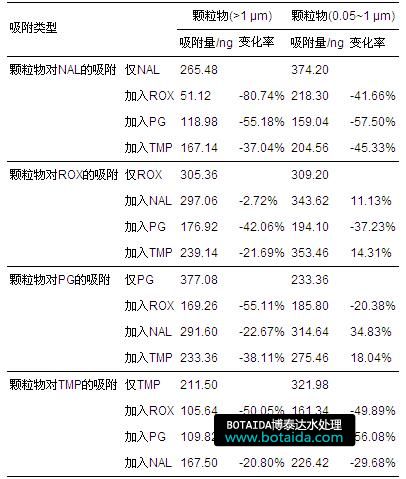 表1 不同粒徑顆粒物對抗生素的吸附
