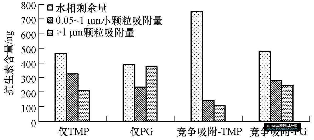 整體上,甲氧芐啶與青霉素G二者互相抑制,青霉素G對甲氧芐啶的抑制作用更明顯,特別是對于大顆粒吸附能力來說.但是,甲氧芐啶的存在卻增強了小顆粒對青霉素G的吸附能力.