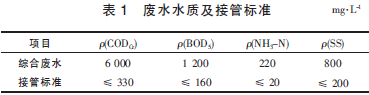 醫(yī)藥中間體生產(chǎn)廢水由工藝廢水和生活污水2部分組成,綜合廢水水質(zhì)指標(biāo)均為平均值,排放標(biāo)準(zhǔn)執(zhí)行當(dāng)?shù)貓@區(qū)污水處理廠(chǎng)的接管標(biāo)準(zhǔn)。廢水水質(zhì)及接管標(biāo)準(zhǔn)見(jiàn)表1。廢水產(chǎn)生量約為260 m3/d,設(shè)計(jì)處理量為300 m3/d。