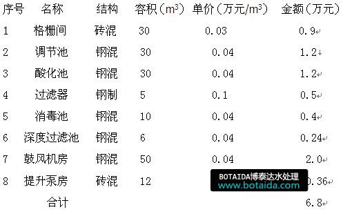 工程投資總額17.796萬(wàn)元,按工程投資折合投資指標(biāo)為1483元/m3•d,而按有關(guān)行業(yè)標(biāo)準(zhǔn),或現(xiàn)有生活廢水一體化處理工程實(shí)踐,像這類高有機(jī)物濃度的廢水,投資指標(biāo)應(yīng)為4000~6000元/m3•d,這表明我們的工程投資指標(biāo)降低了3倍左右。