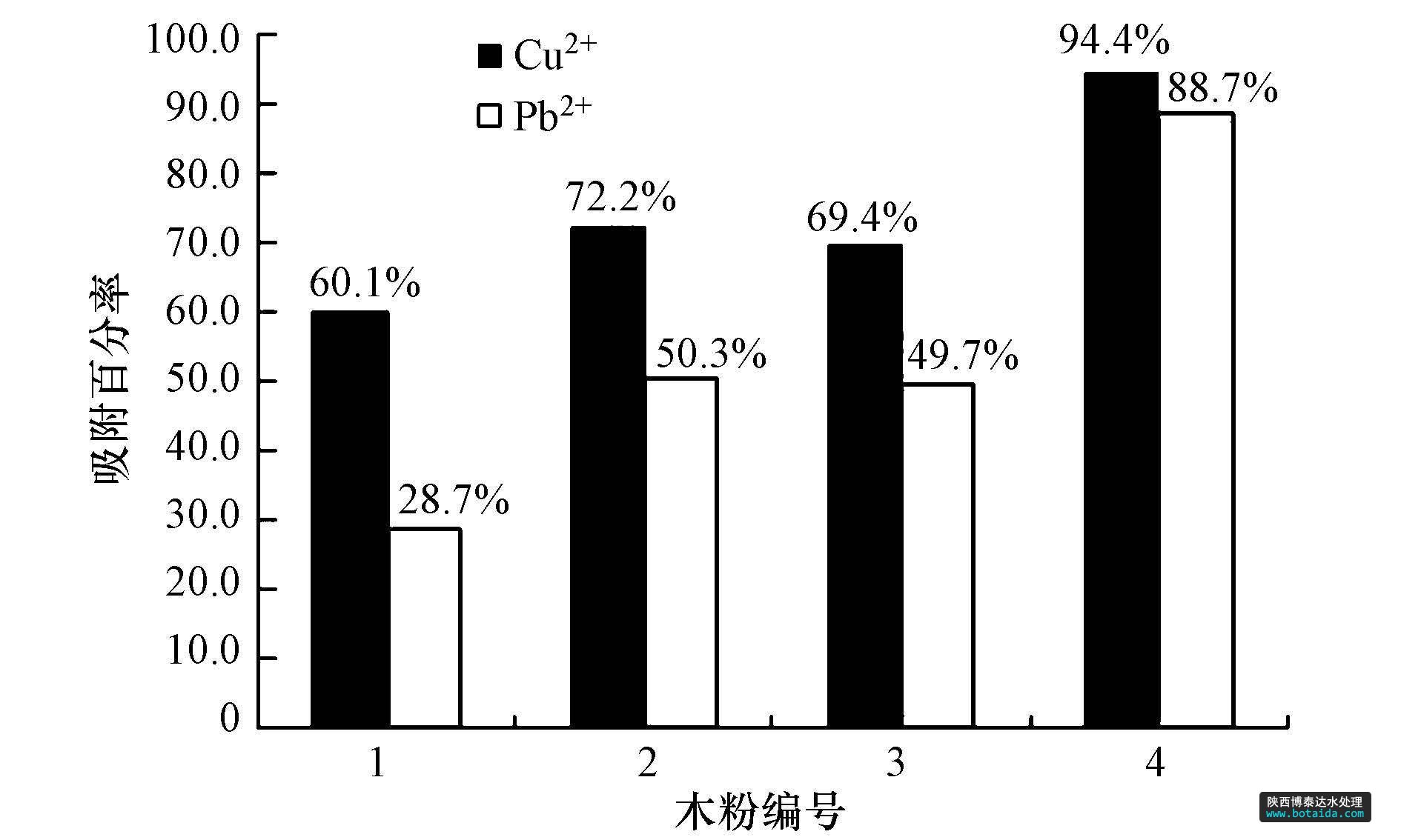 3.2 不同種類木粉對(duì)吸附百分率的影響