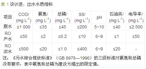 根據(jù)建設(shè)方提供的水量情況并適當(dāng)考慮變化系數(shù),設(shè)計處理規(guī)模為240 t/d,24 h連續(xù)運行,其中120 t回用于生產(chǎn),另外120 t達(dá)到《污水綜合排放標(biāo)準(zhǔn)》(GB 8978—1996)三級標(biāo)準(zhǔn)后排放。