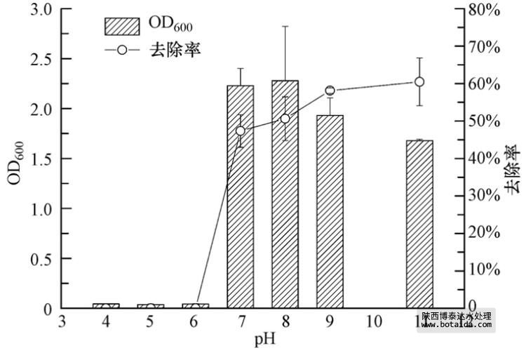 3.3.4 不同pH對(duì)菌株ED-12的生長及除磷能力的影響