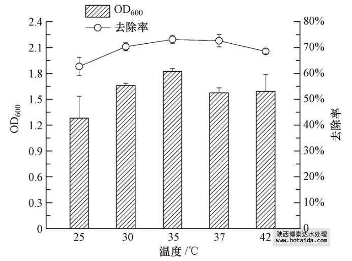 圖 7 不同溫度對(duì)菌株ED-12生長及除磷能力的影響
