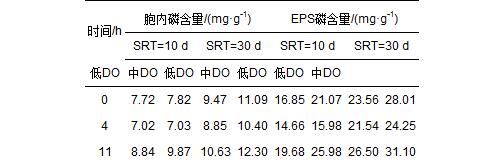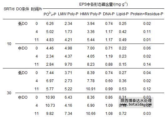 表3 不同SRT和DO條件下EPS中各形態(tài)磷含量