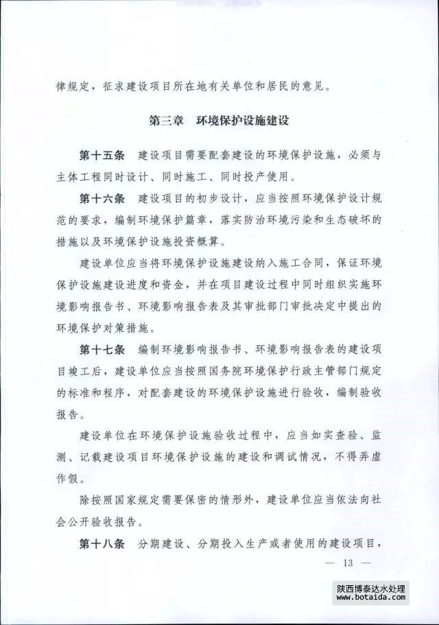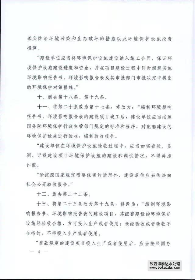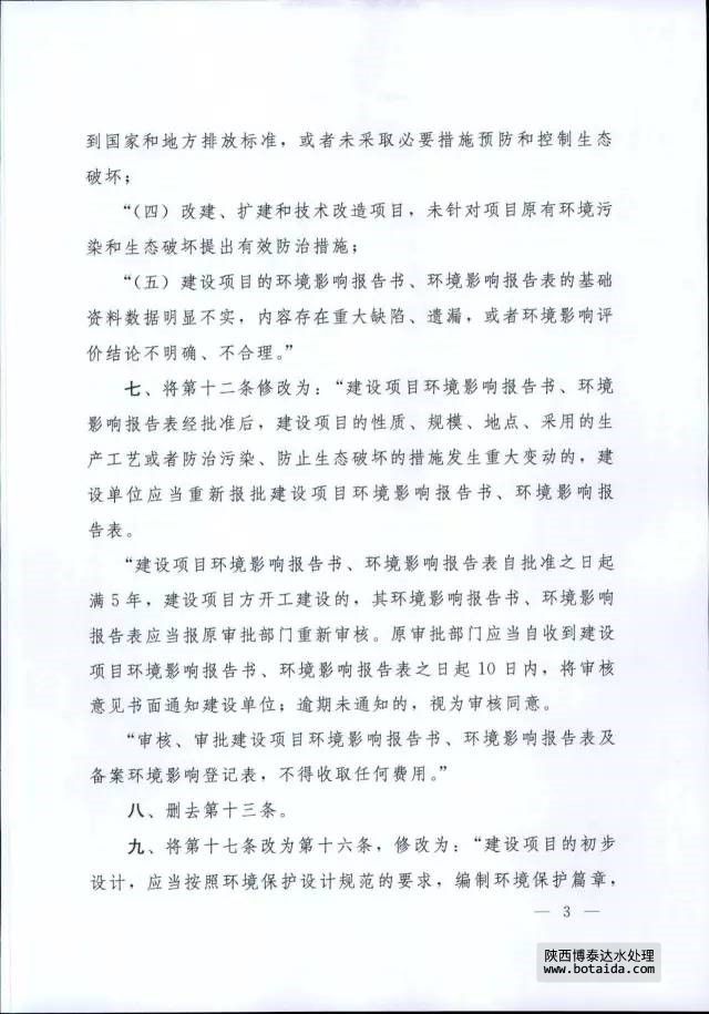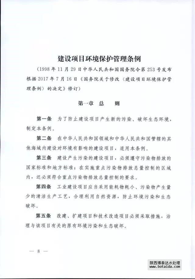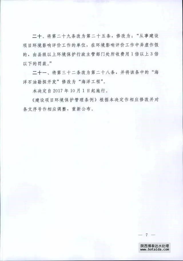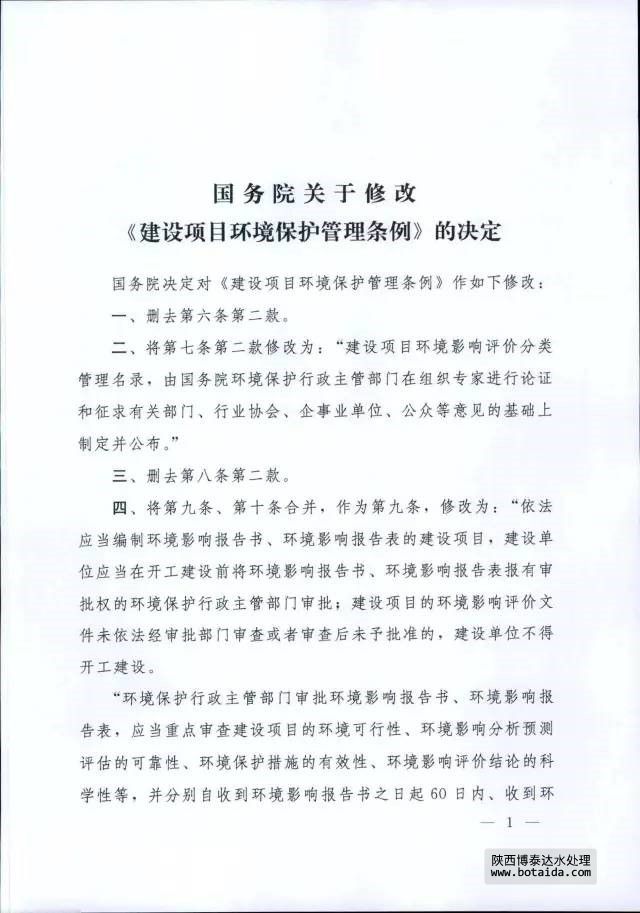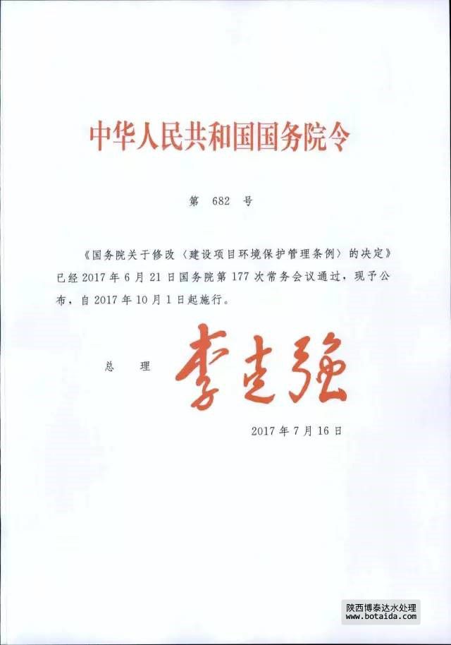 7月16日,國(guó)務(wù)院以國(guó)務(wù)院第682號(hào)令公布了《國(guó)務(wù)院關(guān)于修改〈建設(shè)項(xiàng)目環(huán)境保護(hù)管理?xiàng)l例〉的決定》,自2017年10月1日起施行。