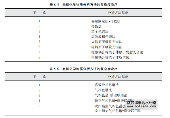 ● 如果要將某個(gè)實(shí)驗(yàn)室提交的分析結(jié)果與其他實(shí)驗(yàn)室的結(jié)果用數(shù)字表示的標(biāo)準(zhǔn)進(jìn)行比 較,那么它們最好不帶有任何系統(tǒng)誤差。盡管實(shí)際上這是不可能的,但每個(gè)實(shí)驗(yàn)室應(yīng)選擇系 統(tǒng)誤差已充分評(píng)價(jià)并處于可接受的低水平的方法。 分析方法根據(jù)其技術(shù)復(fù)雜程度的定性排序如表8.4(對(duì)于無機(jī)化學(xué)物質(zhì))和表8.5所示(對(duì)于有機(jī)化學(xué)物質(zhì))。表中分組的化學(xué)物質(zhì)的分析方法差別很大,次序越高,方法所需的設(shè) 備越高級(jí)或操作越復(fù)雜。通常,越高的次序也意味著越高的總經(jīng)濟(jì)成本。