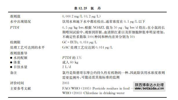 氯丹(CASNo.57 47 9)自1947年開始使用,是一種廣譜殺蟲劑(見表12.25)。目 前,許多國(guó)家已經(jīng)開始嚴(yán)格限制氯丹的使用,現(xiàn)僅通過液下噴射的方式用于殺除土壤中的白 蟻。經(jīng)液下噴射使用時(shí),氯丹會(huì)成為地下水污染的潛在污染源,但濃度較低。氯丹工業(yè)品是 混合物,主要由順式和反式氯丹組成。氯丹不易自然降解,在土壤中不易遷移也不易進(jìn)入地 下水(僅少量檢出)。氯胺易散失進(jìn)入大氣。雖然食物中所含氯胺的濃度水平一直在降低, 但氯胺具有持久性和較強(qiáng)的生物累積可能。
