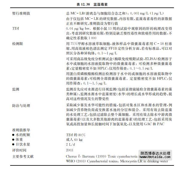?。停?LR是一種真核生物蛋白質絲氨酸/蘇氨酸磷酸酶1和2A的強抑制劑。由于微 囊藻毒素穿過細胞膜主要通過膽酸運載蛋白,其毒性的主要靶器官是肝臟。準則值的推導 主要是基于一項小鼠的13周經口試驗,以及一項豬的44d經口試驗的驗證。微囊藻毒素具 有大量家畜和野生動物的中毒事件記錄,有公開的致癌作用研究。2006年,IARC將 MC LR劃為一種可能的致癌物質(2B組)。