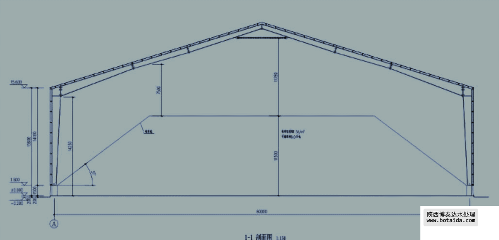 輔料堆棚項(xiàng)目長(zhǎng)約 40米,寬 24 米,高 9.6 米的料倉(cāng)。沿中心點(diǎn)兩側(cè)做兩條約 40 米長(zhǎng)的噴霧降塵點(diǎn),共計(jì)約 80 米。