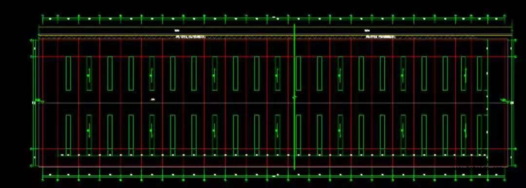 舊熟料堆棚長(zhǎng)約 165.5,寬 45 米,高 12 米的料倉(cāng)。沿兩邊立柱上方跨梁噴設(shè),跨梁共計(jì)數(shù)量 24 個(gè)、鋪設(shè) 23 個(gè),共計(jì)長(zhǎng)度約 1035 米。