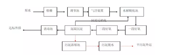 典型的干果加工污水處理工藝如下: