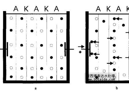 1929年,泡利(W. Pauli)和雅爾科(E. Yalko)首次描述了三室電滲析裝置,置于中間室的料液中的陰離子和陽離子在電場作用下分別進(jìn)入正極室和負(fù)極室。1935年,特奧雷爾(T. Teorell)建立了荷電膜理論,認(rèn)識(shí)到陽離子選擇性透過膜含有帶負(fù)電荷的固定離子,陰離子選擇性透過膜含有帶正電荷的固定離子。1939年,馬內(nèi)戈?duì)柕拢‥. Manegold)和卡勞奇(C. Kalauch)首次在三室電滲析裝置中同時(shí)使用陰離子選擇性透過膜和陽離子選擇性透過膜。