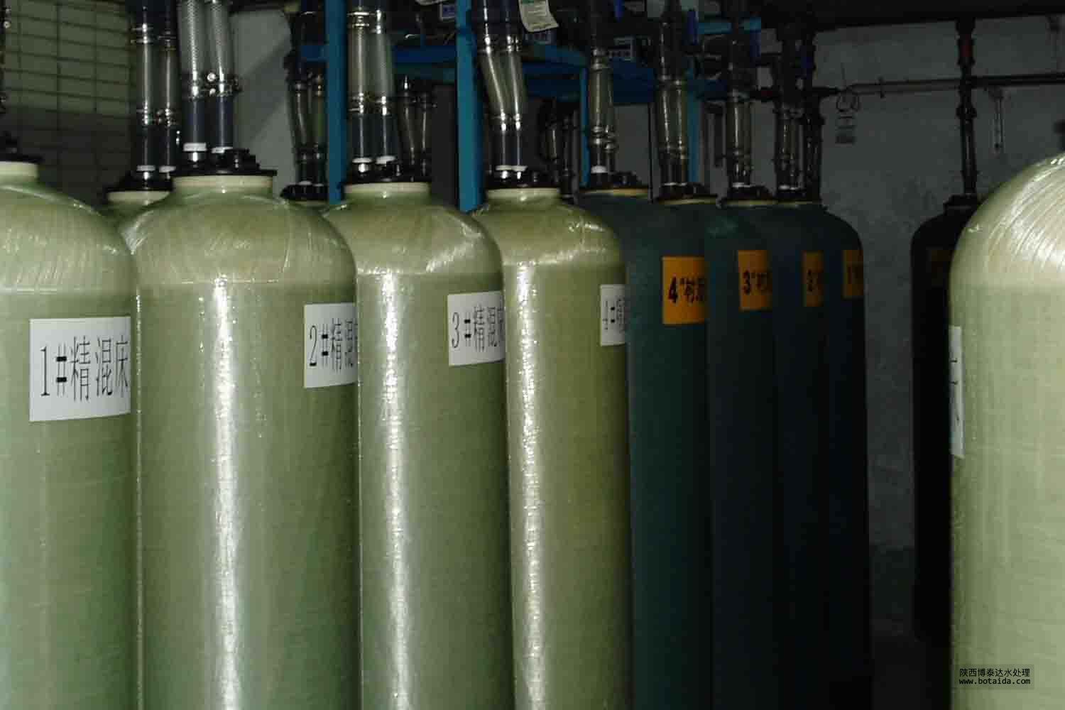 拋光混床凈水設(shè)混床,是將陰陽樹脂按一定比例裝置填在同一交換器中,運行前將它他混合均勻。此時被處理水在通過混合離子交換床后,所產(chǎn)生的氫離子和氫氧根離子立即生成溶解度很低的水,很少形成陽離子或陰離子交換時的反離子??梢允菇粨Q反應(yīng)進行很徹底,故水質(zhì)好,所以混合床串聯(lián)在反滲透或一級復(fù)床除鹽系統(tǒng)后面,用于純水或高純水的制備?;齑卜譃閱巍㈦p床、拋光床、雙床可一用一備;可串聯(lián)使用,以提高產(chǎn)水水質(zhì),有效利用樹脂的交換容量;當(dāng)生產(chǎn)用水量大時,可并聯(lián)使用,運行相當(dāng)靈活、方便。