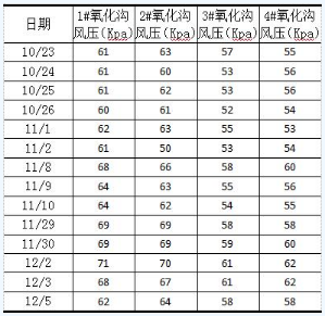 表2 各氧化溝運行風壓數(shù)據(jù)