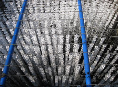鼓風(fēng)曝氣設(shè)備:是使用具有一定風(fēng)量和壓力的曝氣風(fēng)機(jī)利用連接輸送管道,將空氣通過擴(kuò)散曝氣器強(qiáng)制加入液體中,是池內(nèi)液體與空氣充分接觸。