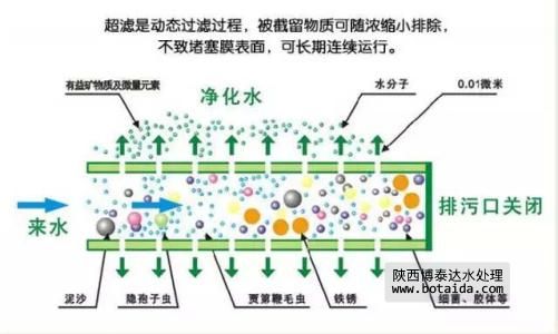 超濾膜的工作以篩分機(jī)理為主,以工作壓力和膜的孔徑大小來進(jìn)行水的凈化處理。以中空纖維為例,以進(jìn)水方式可分為外壓式:原水從膜絲進(jìn)入,凈水從膜絲內(nèi)制取。反之則為內(nèi)壓式。內(nèi)壓式的工作壓力較外壓式要低。超濾博泰達(dá)在飲用水深度處理,工業(yè)用超純水和溶液濃縮分離等許多領(lǐng)域中,得到了廣泛供應(yīng).