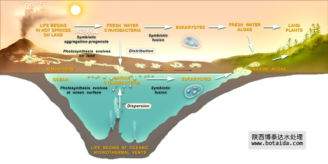 地球的年齡大約為46億年,地球上的海洋至少在38億年前就出現(xiàn)了,而且海洋中就有生命。至于陸地生命最早是什么時(shí)候產(chǎn)生的,目前仍然沒有定論,美國科學(xué)家在一些來自南非的巖石樣本中發(fā)現(xiàn)了細(xì)菌化石的有機(jī)物,時(shí)間定為大約在26億年前。