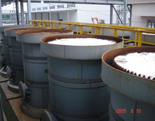 催化微電解是在不通電的情況下,利用微電解設(shè)備中填充的微電解填料產(chǎn)生“原電池”效應(yīng)對廢水進(jìn)行處理。當(dāng)通水后,在設(shè)備內(nèi)會形成無數(shù)的電位差達(dá)1.2V 的“原電池”。“原電池”以廢水做電解質(zhì),通過放電形成電流對廢水進(jìn)行電解氧化和還原處理,以達(dá)到降解有機(jī)污染物的目的。在處理過程中產(chǎn)生的新生態(tài)[.O H] 、[H] 、[O]、Fe2+ 、Fe3+等能與廢水中的許多組分發(fā)生氧化還原反應(yīng),比如能破壞有色廢水中的有色物質(zhì)的發(fā)色基團(tuán)或助色基團(tuán),甚至斷鏈,達(dá)到降解脫色的作用;生成的Fe2+ 進(jìn)一步氧化成Fe3 +,它們的水合物具有較強(qiáng)的吸附- 絮凝活性,特別是在加堿調(diào)pH 值后生成氫氧化亞鐵和氫氧化鐵膠體絮凝劑,它們的絮凝能力遠(yuǎn)遠(yuǎn)高于一般藥劑水解得到的氫氧化鐵膠體,能大量絮凝水體中分散的微小顆粒、金屬粒子及有機(jī)大分子。該工藝具有適用范圍廣、處理效果好、成本低廉、處理時間短、操作維護(hù)方便、電力消耗低等優(yōu)點,可廣泛應(yīng)用于工業(yè)廢水的預(yù)處理和深度處理中。應(yīng)用廢水種類:染料廢水、焦化廢水、醫(yī)藥廢水、農(nóng)藥廢水、樹脂廢水、助劑廢水、制革廢水、電鍍廢水、造紙廢水、淀粉廢水、大蒜廢水、垃圾滲濾液等工業(yè)類廢水。